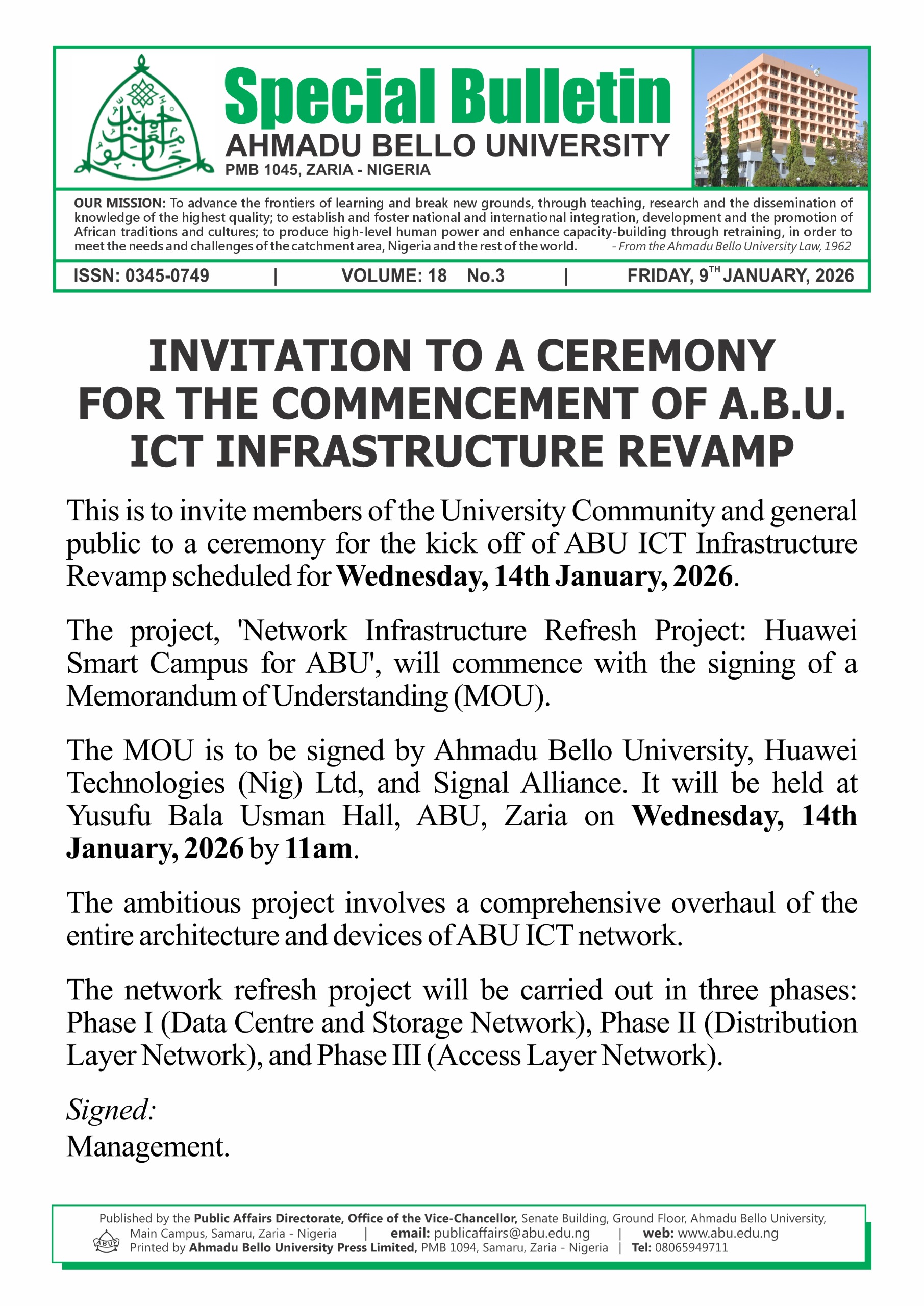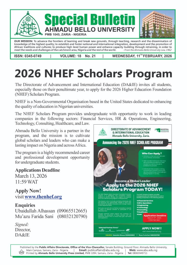 WELCOME TO AHMADU BELLO UNIVERSITY, ZARIA