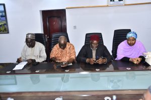 Also present at the meeting were the Deputy Vice-Chancellor (Advancement, Research and Innovation), Prof. Aliyu Sanusi Rafindadi; the Registrar, Mal. Rabiu Samaila; the Acting University Librarian, Dr. Abubakar Abdullahi Mohammed; and the representative of the Bursar, Mal. Ibrahim Salisu.